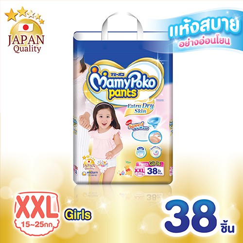 ซื้อ MamyPoko Pants Extra Dry Skin Girls ไซส์ XXL38 ชิ้น จากร้านเรา รับประกันว่าได้รับของชัวร์และราคาถูกกว่าที่อื่นแน่นอน รอไร กดเลยที่นี่…