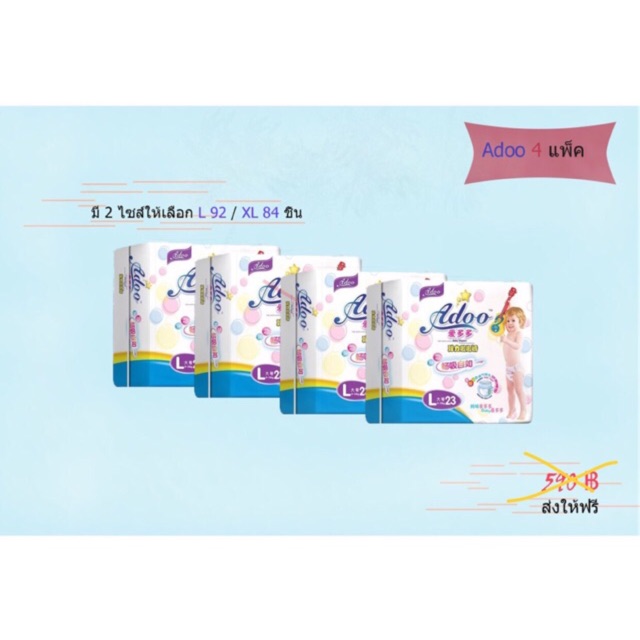 หมดแล้วหมดเลยจ้า 539 บาท/4แพ็ค จำนวนชิ้น L 92 ชิ้น / XL 84 ชิ้น เหลือแค่สองไซส์. L, XL L - สำหรับเด็กน้ำหนัก 9-12 กก. XL - สำหรับเด็กน้ำหนักตั้งแต่ 13 กก. คุณสมบัติพิเศษแพมเพิสเอดู(แบบกางเกงสวมใส่) แผ่นหน้านุ่มดุจผ้าฝ้าย ไม่เกิดการระคายเคืองต่อผิวลูกน้อย ขอบขาปกป้อง2ชั้น ป้องกันการรั่วซึม ขอบเอวมีความยืดหยุน ระบายอาศได้ทั่วทิศทาง การถักทอ แบบไร้ตะเข็บ ป้องกันการเกิดรอยแดง หรือ รอยกดทับ การซึมซับดีเยี่ยม ซึมซับน้ำได้มากกว่า 8 แก้ว มีลวดลายนักษัตรที่น่ารัก 12 ราศี