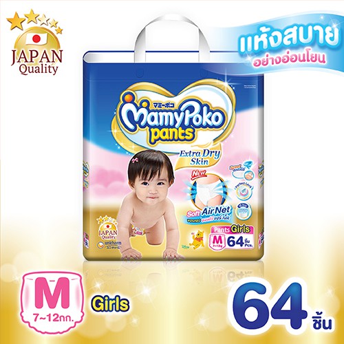 - ชื่อสินค้า MamyPoko Pants Extra Dry Skin Girls ไซส์ M 64 ชิ้น